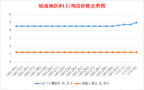 皖南地区817/鸡苗价格走势图(图表来源:鸡病专业网)