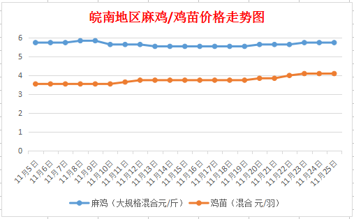 皖南地区麻鸡/鸡苗价格走势图(图表来源:鸡病专业网)
