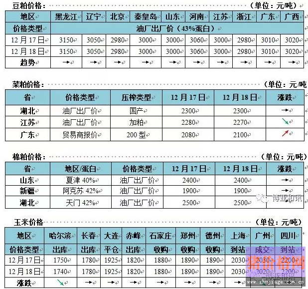 今日国内豆粕现货价格稳中调整。中美对推进下一步经贸磋商工作的时间表和路线图交换了意见,上周四中国已重启美国大豆采购,初次采购113万吨,上周五继续采购30万吨大豆,预计未来可能继续增加采购。但中国采购量依然低于美国农户期望,叠加南美大豆丰产前景乐观,美豆市场承压回落。目前国内油厂大豆库存仍处于高位,因出货较慢和压榨亏损,油厂开机率保持偏低水平,但豆粕现货供应仍较宽松,油厂顺价出货为主,局部降价销售。国内非洲猪瘟持续扩散,猪料需求旺季不旺,禽料需求有所回落,终端市场备货谨慎,市场成交清淡。操作建议:观望为主,保持安全库存。