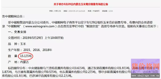 5月29日内蒙古玉米15.1万吨