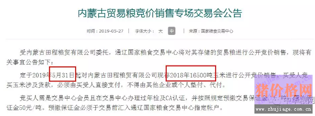 5月31日内蒙古1.65万吨贸易粮竞价销售