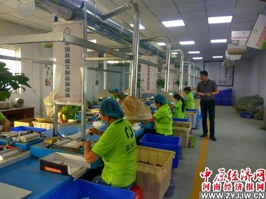 在宽敞明亮的艾草卷条车间里,30余名女工在机器旁,仔细地把蓬松的艾绒在白纸上熟练地卷成圆柱形艾条。经询问后得知,这里的很多卷条女工都是枣园镇的贫困户,有的在家里需要照顾孩子上学,有的需要照看年迈的公公婆婆,自从村里建起了扶贫就业基地,在艾草加工车间务工,一天能熟练卷艾条2000多根,基地每月还给贴补300元,每月收入2000元左右,既轻松挣钱补贴家用,又照顾了家人,赚钱务工两不误。