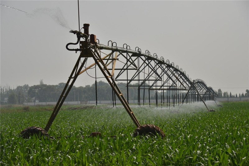 这是6月22日在兴胜店村拍摄的大型喷灌设施。