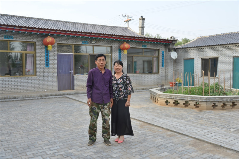6月22日,兴胜店村村民张九马(左)和侯巧林夫妇在自家院子里合影。院子除自家居住外,还设有客房、餐厅,可作为农家乐接待游客。