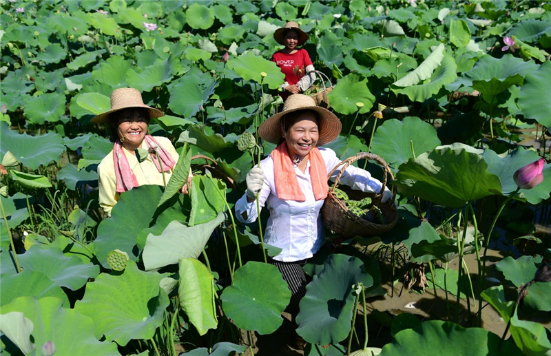 近年来,安徽省肥西县铭传乡着力打造特色生态观光农业,积极引导当地农民发展集观赏、生态、经济效益为一体的太空莲种植,带动当地农民创业、就业、增收。新华社发(徐勇 摄)
