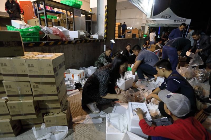 8月14日,在雅江县城顺丰快递办事处,不少人准备邮寄新鲜松茸。