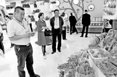 图为青海绿色发展投资贸易洽谈会上“老爷山”蔬菜展示区。
