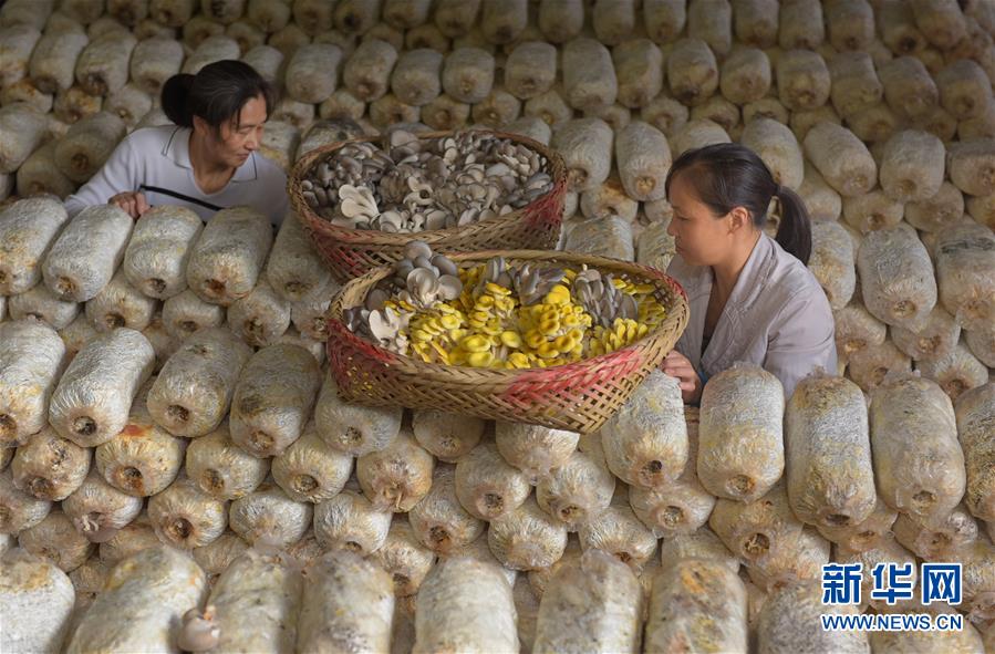 湖北省宣恩县采取“合作社+基地+农户”的模式发展食用菌种植,已建成集“种、销、育”为一体的蘑菇产销产业链,成为助力农民脱贫致富的有效途径。 新华社发(王俊 摄)