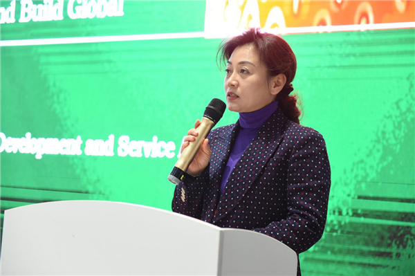 图为中国优质农产品开发服务协会会长黄竞仪作主题演讲