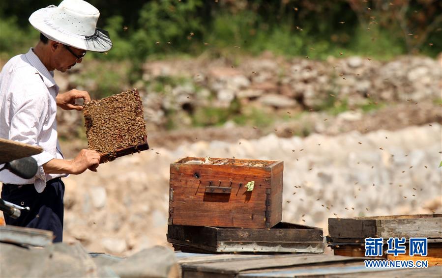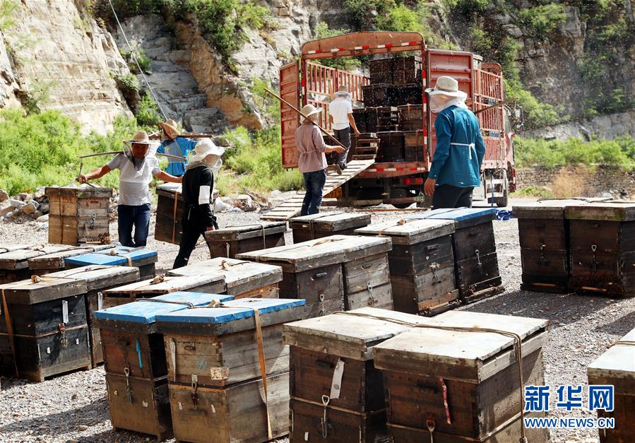 每年这个时节,来自安徽、四川等地的蜂农都会转场到河北省石家庄市井陉县采集荆条花蜂蜜。井陉县地处太行山深处,漫山遍野的荆条花6月初开始流蜜,吸引蜂农转场到井陉来采集荆条蜜。 新华社发(张秀科 摄)
