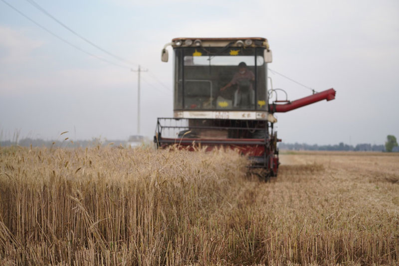 近日,河北省雄安新区小麦陆续成熟,当地村民抢抓农时进行收获。