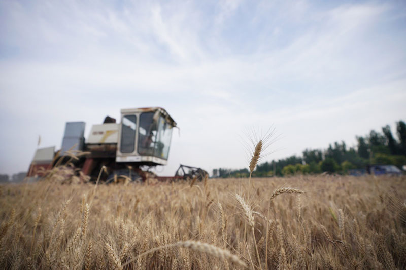 6月13日,雄安新区大王镇小王村村民在收获小麦。新华社记者 朱旭东 摄