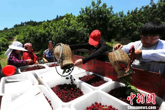 杨梅采摘时间短,相比其他农产品销售期也短,过去很多都自然掉落了,农民丰产不丰收。为此,靖州充分利用“互联网+”、冷链物流、社村帮扶结对等新型方式,与各大互联网电商渠道、物流企业合作,构建通达中国的农产品产地直销和网上销售的营销网络,促进梅农增收致富。
