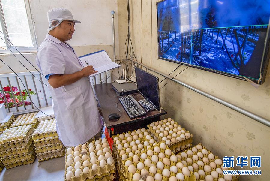 6月26日,在河北省衡水市武邑县清凉店镇鲍贤兰村“跑步鸡”养殖基地内,工作人员在监测鸡舍日常情况。