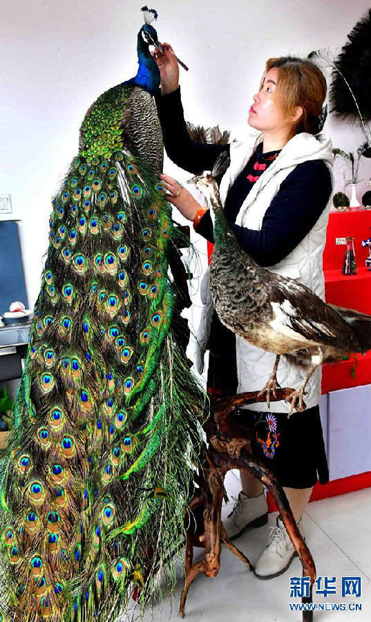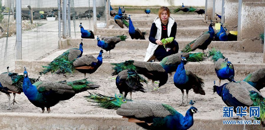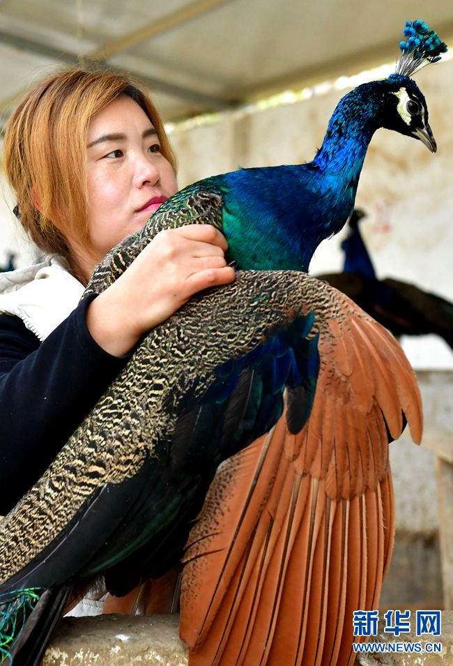 经过三年的探索学习,朱九盘的孔雀养殖规模越来越大,养殖蓝孔雀4000余只,销售包括孔雀羽毛、孔雀蛋、孔雀肉、孔雀标本工艺品等一系列产品。在自身发展的同时,朱九盘还积极带动张坞镇岳社村79户贫困户进行孔雀养殖,免费为他们培训养殖技术及销售服务,采取滚动发展、稳定增收,从而使贫困户达到自行创业的能力和养殖规模,助力乡村振兴。新华网发(高山岳 摄)