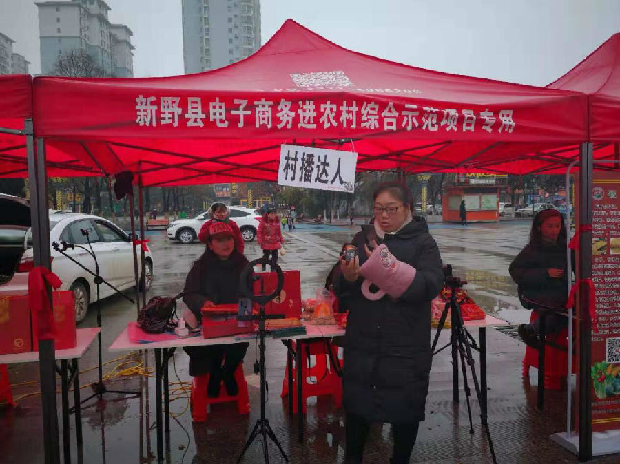 1月6日,新野县第一届(网商)年货节在县文化广场隆重启动。在年货节现场,新野县选拔10位优秀村播达人为家乡产品代言销售,通过直播带动新野本土产的小磨油、小杂粮、花生、柴鸡蛋、农家粉条等在线上热卖,开幕当天销售额达到10万余元。