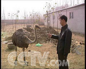 蒋天虎:“我赚的就是我养鸟,他回收,我赚自己养鸟的钱。还有基地那一块,我每年负责帮他收1000只鸵鸟,得2万5千元奖金。”