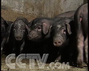 养猪场场长 王东:“我每天来三遍,早中晚,它只要听到我的声音,听到我的脚步声,它就感觉到我要来了。它全都抬着头等着我给它们刷,跟它们谈谈话,他们就感到很愉快,很高兴。”