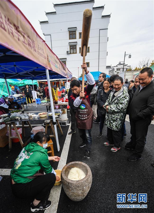 11月19日,浙江省杭州市临安区河桥镇举办一场集传统文化展示、民俗表演、美食品鉴等于一体的传统庙会,吸引了众多游客和当地居民前来感受热闹气氛。