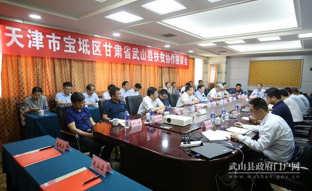 6月20日至21日,天津市宝坻区与甘肃省武山县扶贫协作座谈会召开,双方就深化对口帮扶、产业发展、劳务输转、人才交流,实施帮扶协作项目,抓好东西扶贫协作工作进行座谈交流,举行了天津市宝坻区援助帮扶资金授款仪式,签订了2019年东西部扶贫协作框架协议。