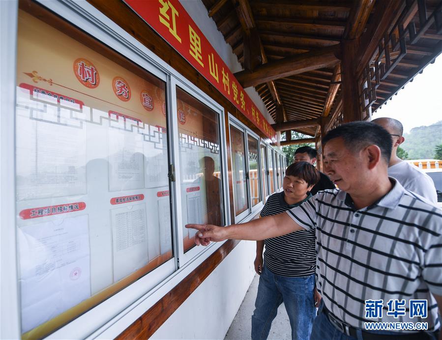 6月26日,作为道场乡的首个清廉乡村示范村,红里山村的村民们正在查看村里的党务、村务公开栏,这也是当地清廉乡村实行村务透明公开的举措之一。