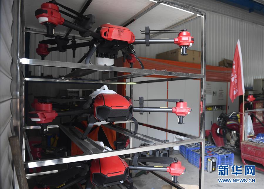 这是在吉林市万昌镇张全家庭农场机库内拍摄的农业植保无人机(7月16日摄)。