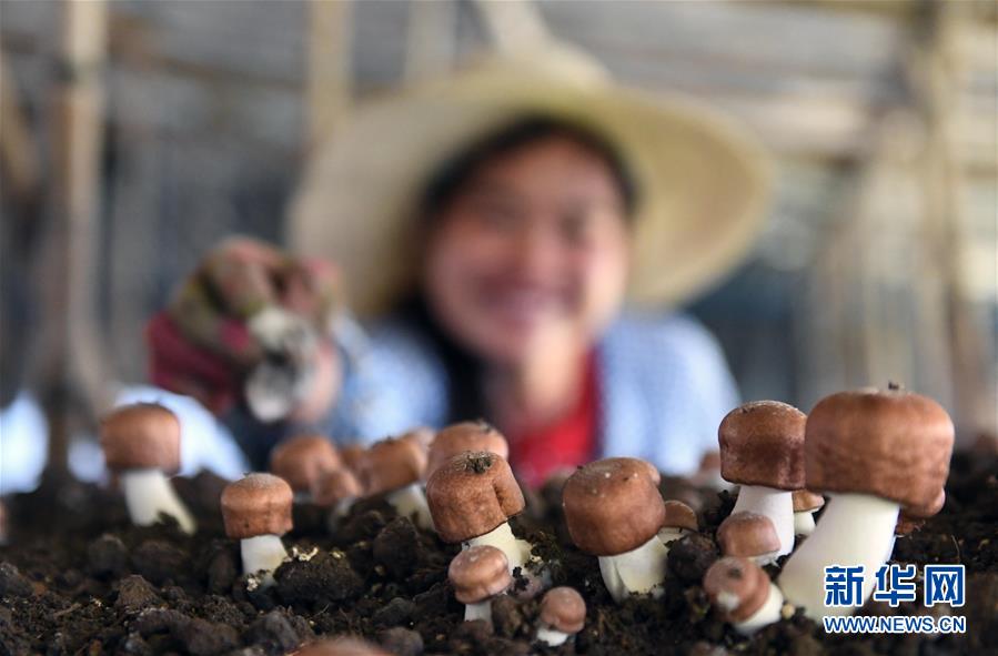 近年来,云南省文山壮族苗族自治州依托当地气候、地理优势,大力发展姬松茸种植产业。据了解,目前当地以“公司+合作社+农户”为主导的发展模式在全州建设姬松茸种植大棚2500多座,有1200多户农户参与种植,户均年收入2.5万余元。 新华社记者 杨宗友 摄