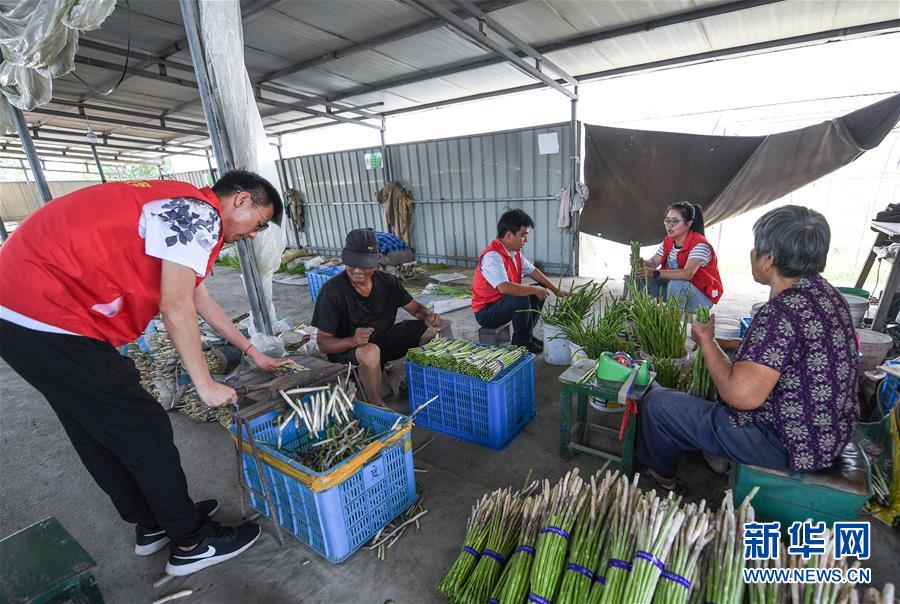 9月18日,党员志愿服务队成员到吕山乡帮助低收入农户打包芦笋,解决当地种植户在芦笋丰收时节人手不够的难题。