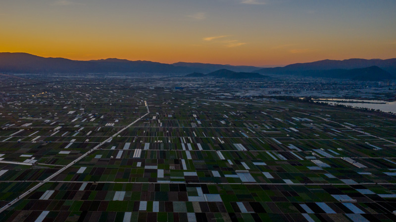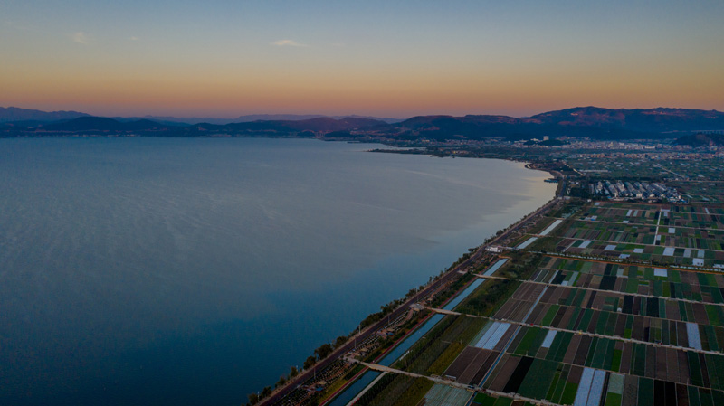 初冬时节,云南省玉溪市通海县风景秀丽,山峦、湖水与农田组成了一幅美丽的田园诗画卷。新华社记者 胡超 摄
