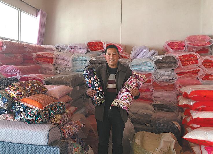 尕让乡组织委员曹洪娟介绍说:“现在尕让乡席芨滩村、黄河滩村有20至30户人家在做枕头。康淘做的枕头规格比较大,质量也非常好,经常批发给周边的村民,让大家代销,帮助他们增加收入。”
