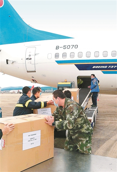 民航广西监管局向武汉捐赠的一批医疗物资正在有序装载上机。李东一/摄