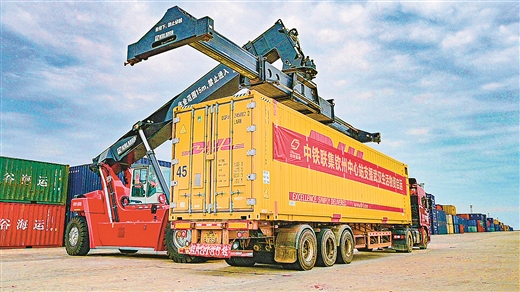 钦州市首批近25吨果蔬从中铁联集钦州中心站发往武汉,保障疫区生活物资供应。 张晓冬/摄
