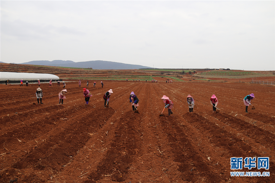 走进云南省宣威市板桥街道永安村田园综合体,拉线、挖坑、耕种……千亩玫瑰园项目种植正如火如荼。