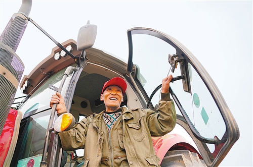 张北县德胜村抢抓农时做好春耕备耕。村民在拖拉机上望着耕好的农田展露笑颜。