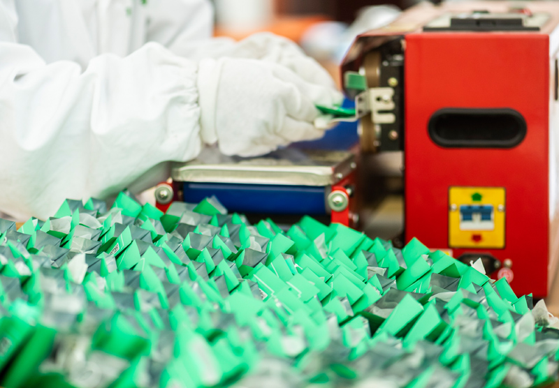 4月25日,工人在秭归县九畹丝绵茶扶贫车间对制作的新茶进行包装。