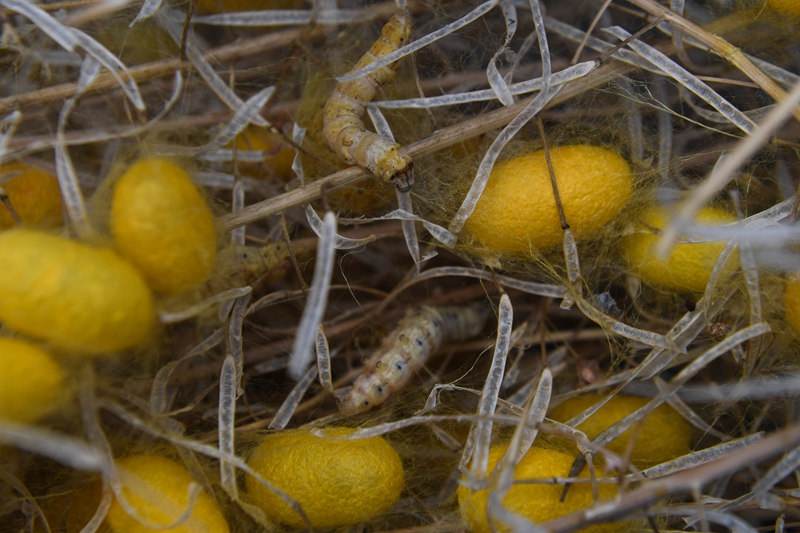 近期,蚕桑之乡浙江省桐乡市的蚕农们迎来了蚕茧丰收的季节,其中新品种“黄金茧”的增收效果尤其明显。据介绍,与普通蚕丝相比,色泽金黄的黄金蚕丝中叶黄素含量高,抗菌效果更好,深受市场青睐。2020年春季,浙江省桐乡市共计发放黄金蚕茧种1225张,产量预计75吨,总产值近300万元,较普通蚕茧增收约20%,成为当地农业增收的亮点。