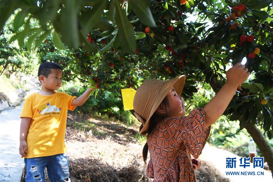 6月4日,小朋友在燕山乡泉水村杨梅基地采摘杨梅。
