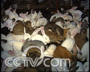 潘俊宇:“北方兔子经过长途运输到了南方市场,在运输过程当中因为路途比较遥远,那么到了市场以后很多兔子就已经非常疲劳了。到了市场趴在那里很多都不会动,卖相还是比较差的。”